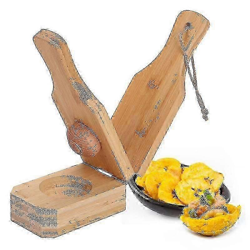 Wooden Tostonera Plantain Press Banana Smasher Maker, 2 In 1 Crispy Tostones For Fried Plantains Chips &tostones Cups Cs