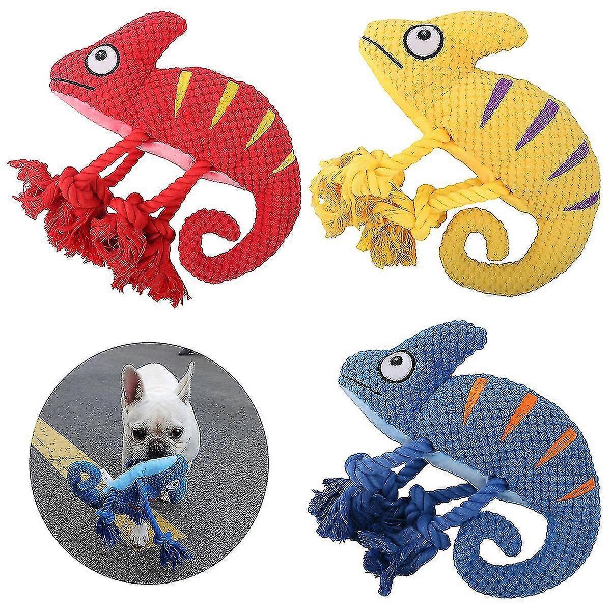 Squeaky Plush Toy Chameleon Pet Dog Toy Knotted Cotton Rope Pull Interactive Pet Toy