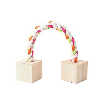 Small Animal Handmade Wooden Blocks Pet Grinding Teeth Toys Colorful Rope