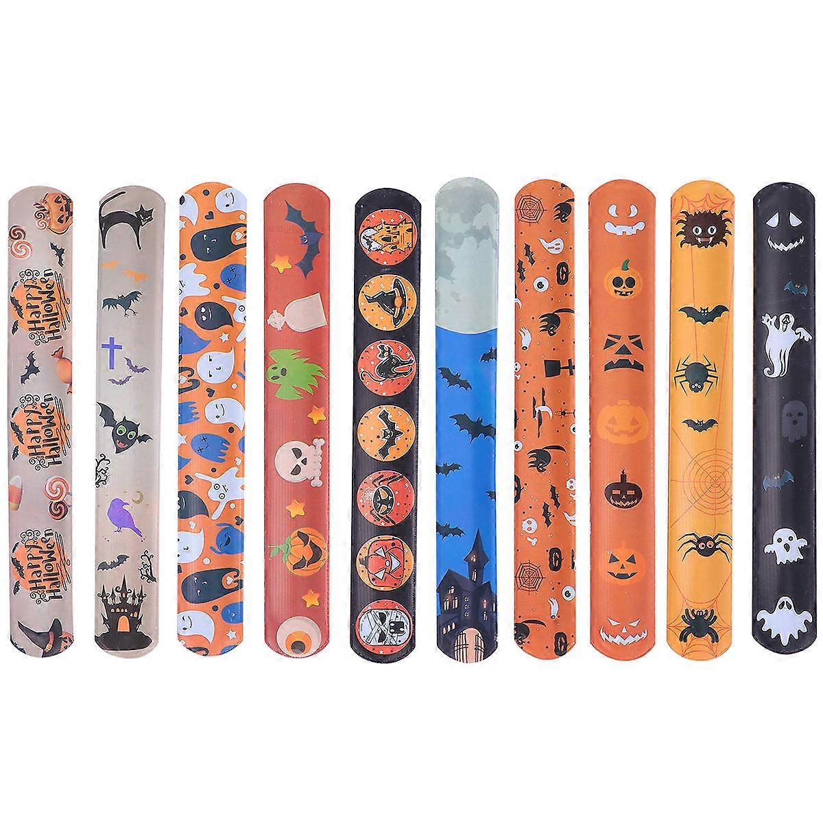 Slap Wrist Bracelets Halloween Theme Wearable on Wrist Ankles Arms for Children Assorted Color 22X3CM Round Cosplay Design 20Pcs