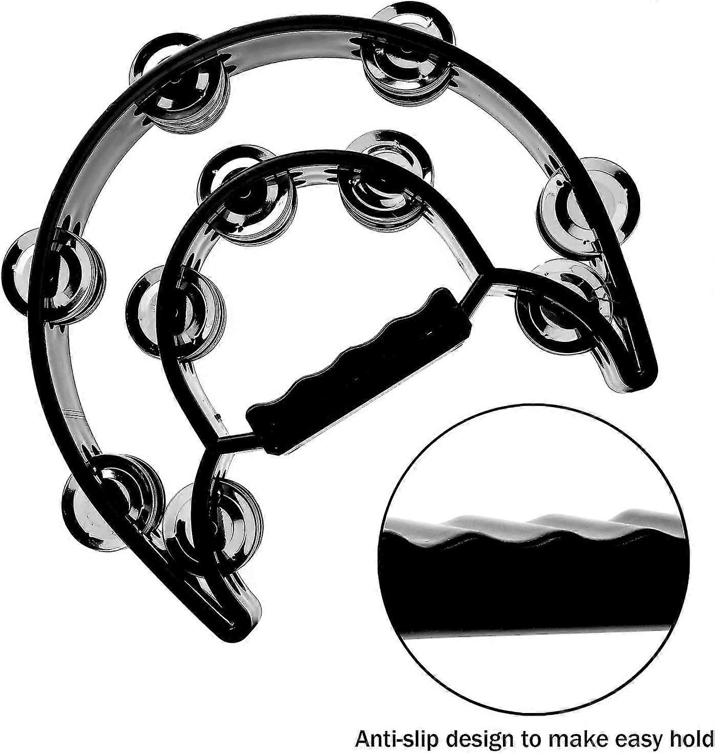 Double Row Tambourine, Metal Jingle Hand-held Percussion Tambourine Instrument Gift For Kids And Adults (black)