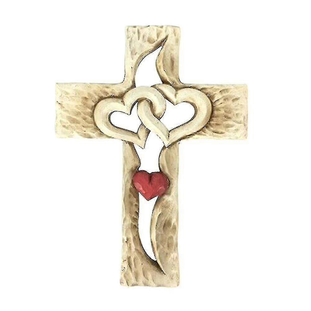 Jesus Religious Orthodox Prayer Carved Wooden Cross Intertwined Hearts Wall Decor/YY