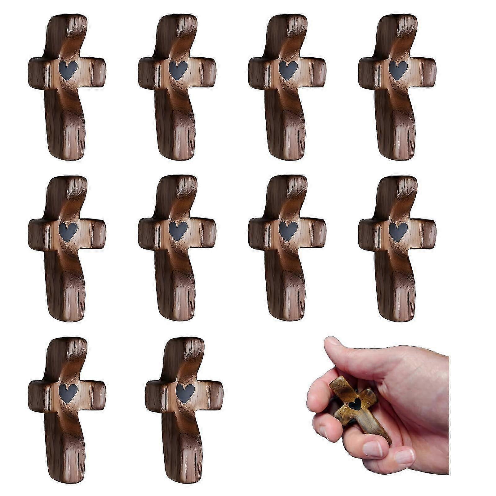 Features:_x000D_Encouragement Present: Holding this Cross-My-Heart wooden crosses for crafts present will bring you comfort in times of need. Its ultra-smooth texture not only helps relieve stress but also serves as a spiritual companion during prayer and meditation._x000D_Premium Material: The small crosses are crafted from quality wood, ensuring its durability. Its smooth-texture feels soothing to hold, especially during moments of prayer and meditation._x000D_Portable: Carry this compact wooden symbols with you or display it in your as a reminder of your belief and source of strength._x000D_Wide application: whether you are at home, at work or outdoors, these Comfort Crosses can be easily carried in your bag and provide a sense of peaces anywhere. Their multiple uses make them a must-have for anyone seeking comfort and inspiration._x000D_Beautiful present: give comfort and encouragement to loved ones who are in a difficult phase with our comfort crosses. A perfect present for any occasion, share it with those you care about._x000D_Notice:_x000D_Actual color may be slightly different from the image due to different light effect_x000D_Please allow 1-3cm deviation due to manual measurement_x000D_ _x000D_Description_x000D_Material: black walnut_x000D_Weight: 3g_x000D_Size: 5*2.5*1.3cmPackage List:_x000D_1/5/10PCS Small Wooden-Cross