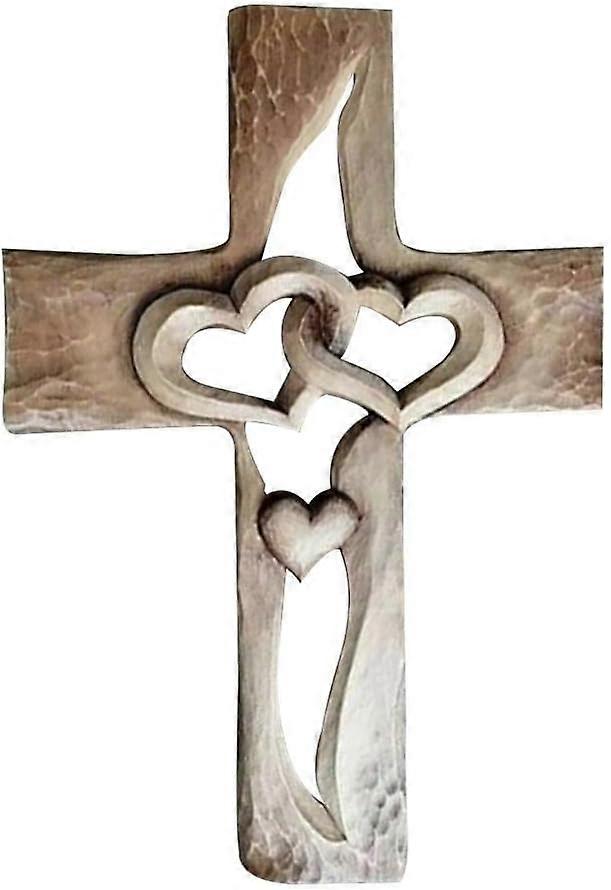 Carved Wooden Cross with Intertwined Hearts Wooden Cross - Connected with Two Hearts Intertwined Hearts Wooden Cross for Garden