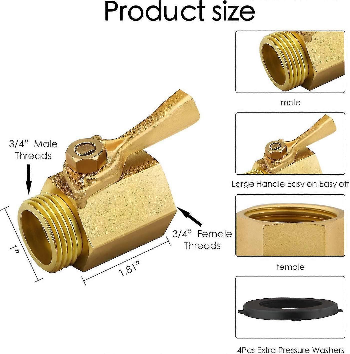 Hose Shut Off Valve- 3/4, Heavy Duty Brass Garden Shut Off Valve Fit All Garden Hose Connector.easy To Connect With 3/4" Brass Connector Hose.2pack
