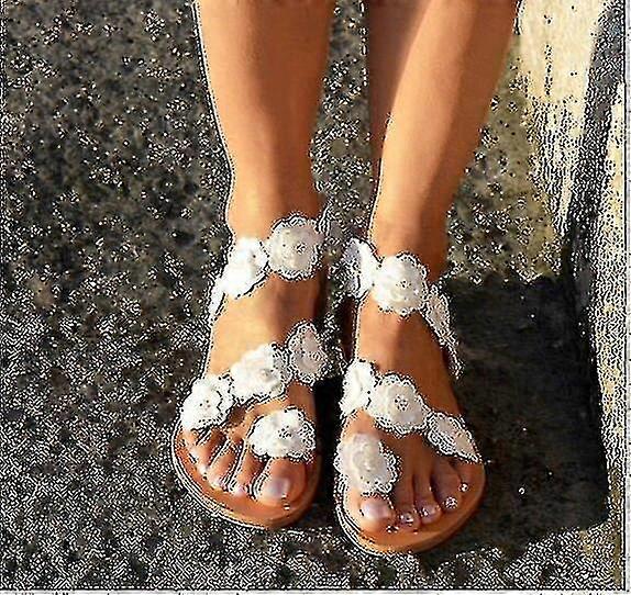 Women Lace Sandals, Dressy White Flat Sandals, Sandals, Leather Sandals