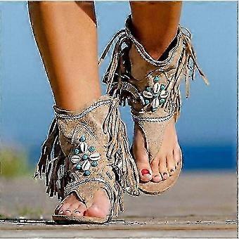 Women's Retro Gladiator Sandals 2023: Vintage Clip-Toe Tassel Boots, Casual Summer Fashion for Women - New Arrival Shoes