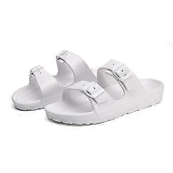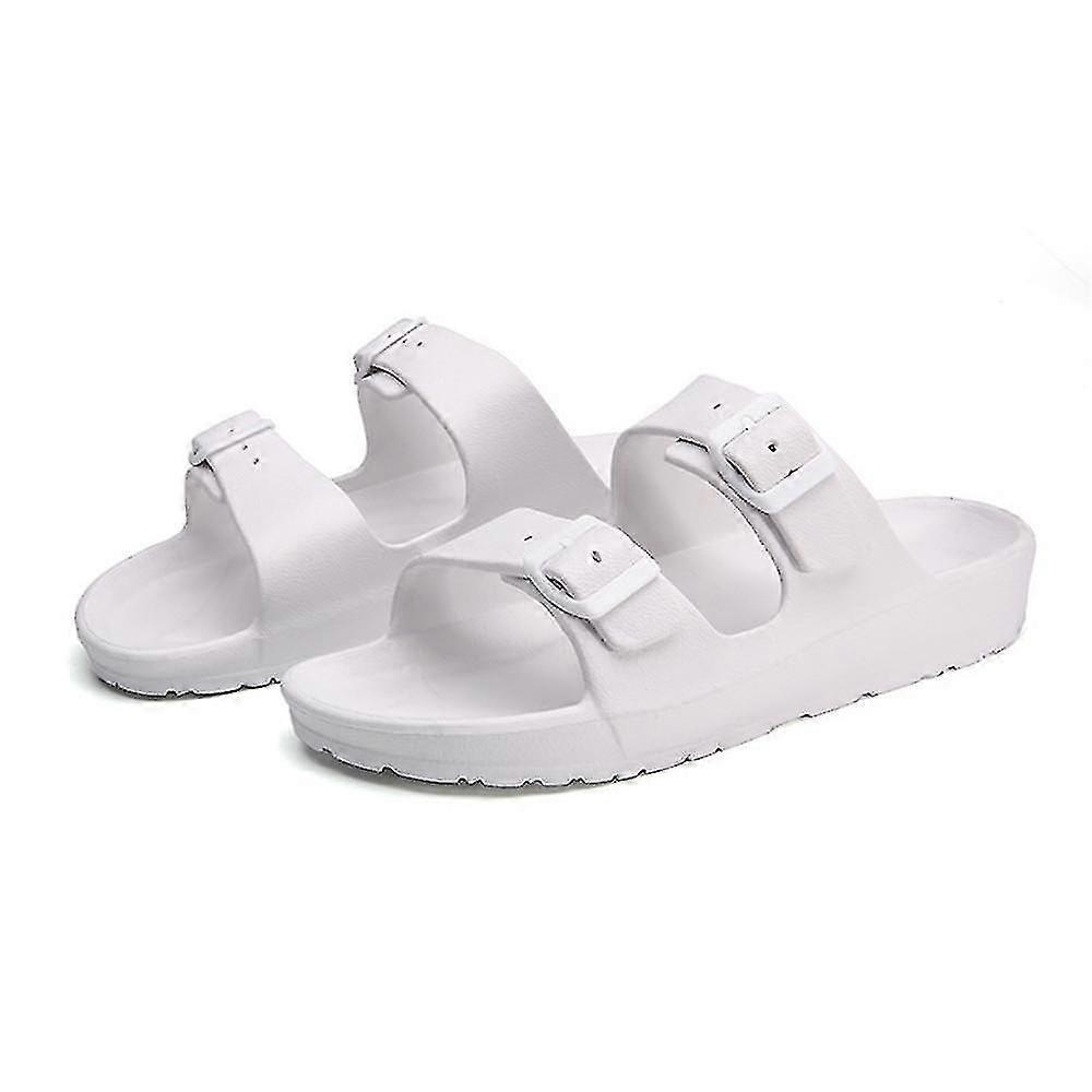 Outdoor Indoor Comfort Slides Double Buckle Adjustable Flat Sandals (white, 38)