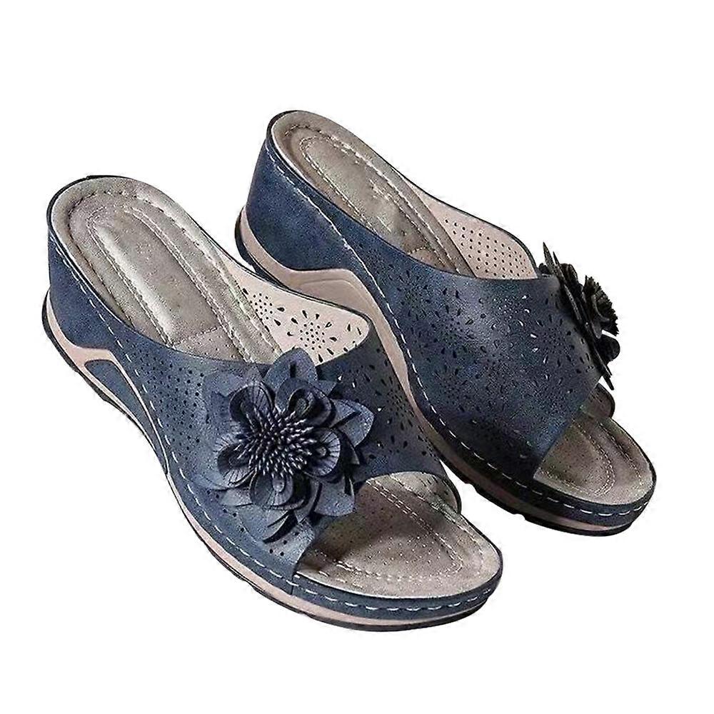 Plus Size Sandals Women's Woven Flower Wedge Slippers For Indoor Outdoor Wear