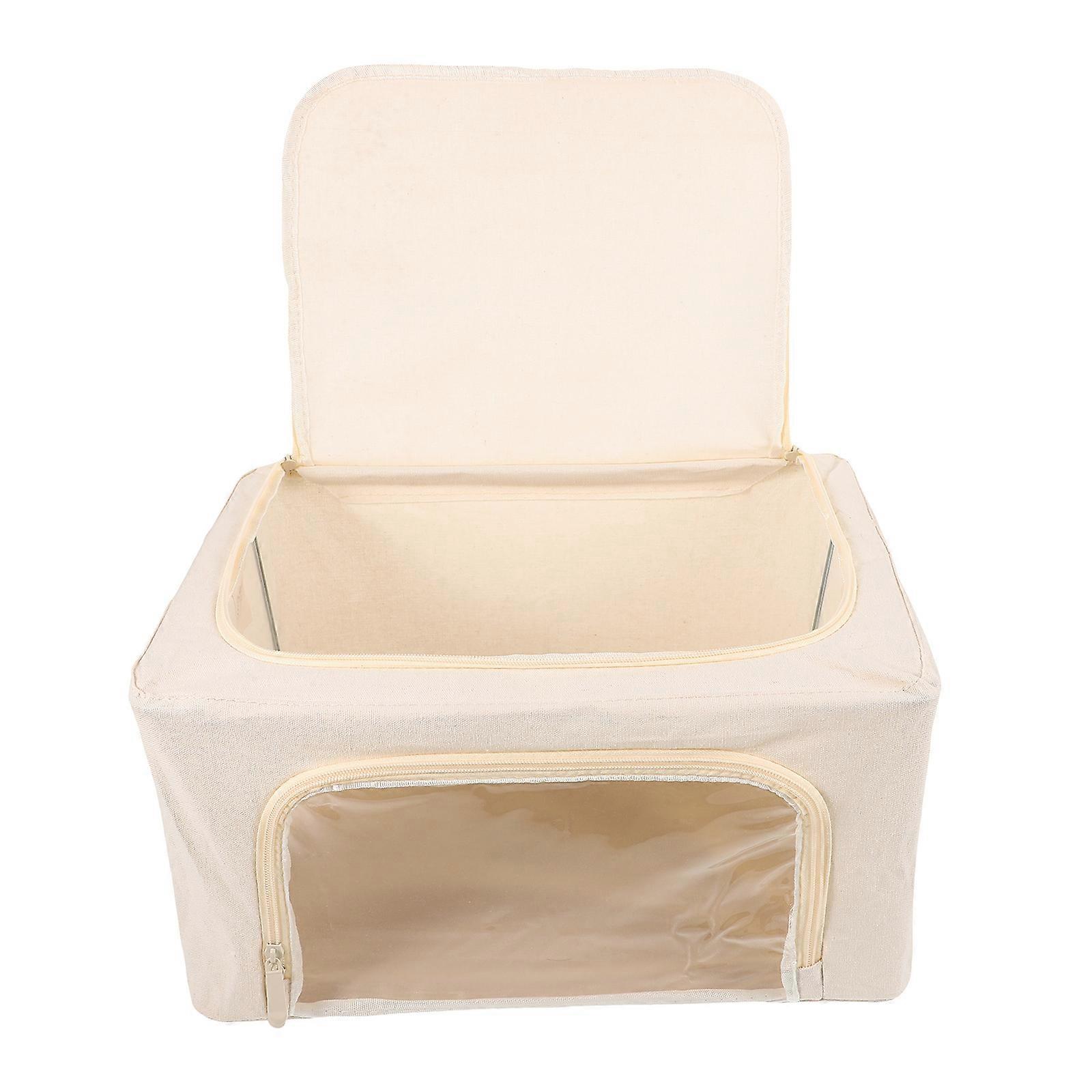 Foldable Cloth Organizer Storage Bins with Large Opening and Sturdy Beige Fabric Design for Bedding and Clothes