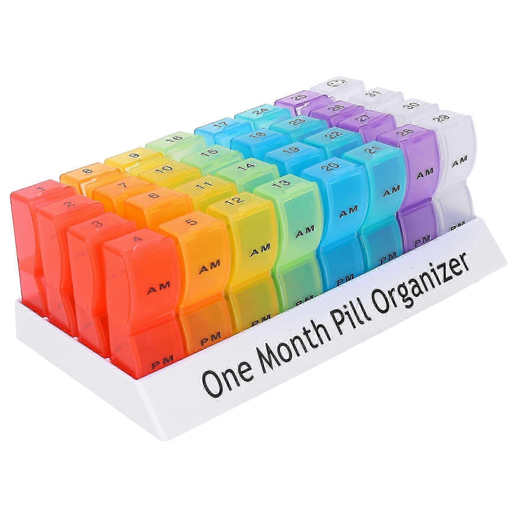 Monthly Weekly Pill Organizer Boxes-AM/PM Daily,31 Day 32 Compartments Vitamins Medicaiton Medicine Reminder