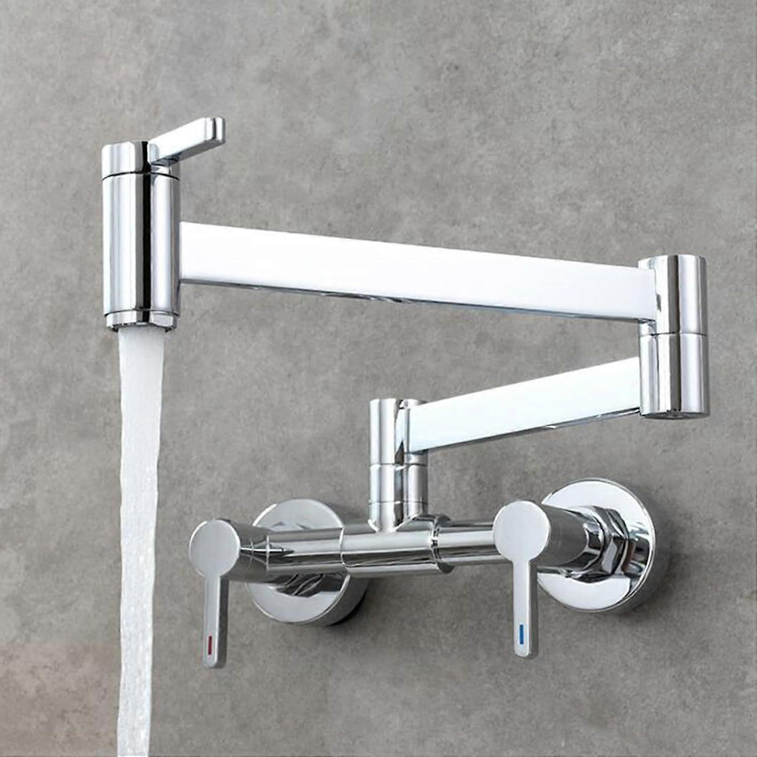 Wall Mounted Kitchen Faucet Cold and Hot Folding Brass 360 Swivel Wall Mounted Kitchen Faucet-Brushed Gold
