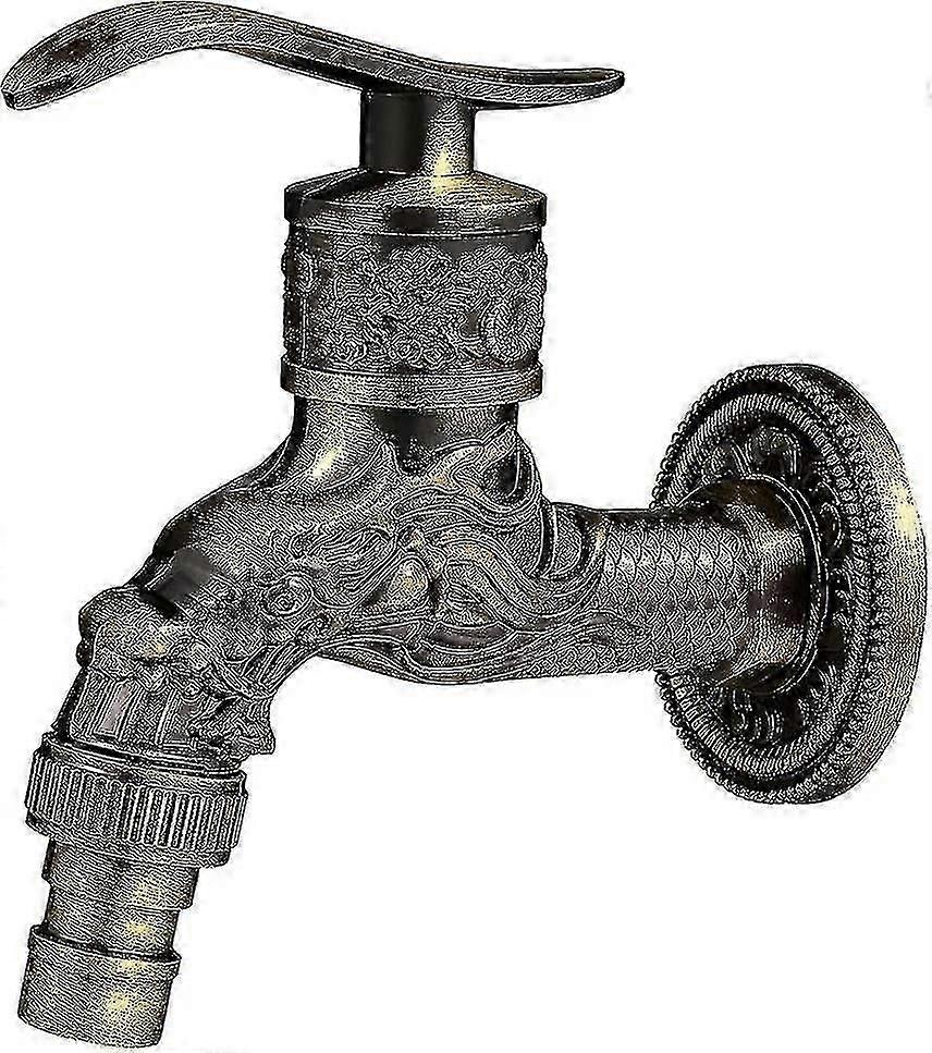 Retro Brass Wall Mounted Faucet, G1/2" Outdoor Garden Faucet,antique Copper Dragon Carved Faucet For Kitchen Bath Garden