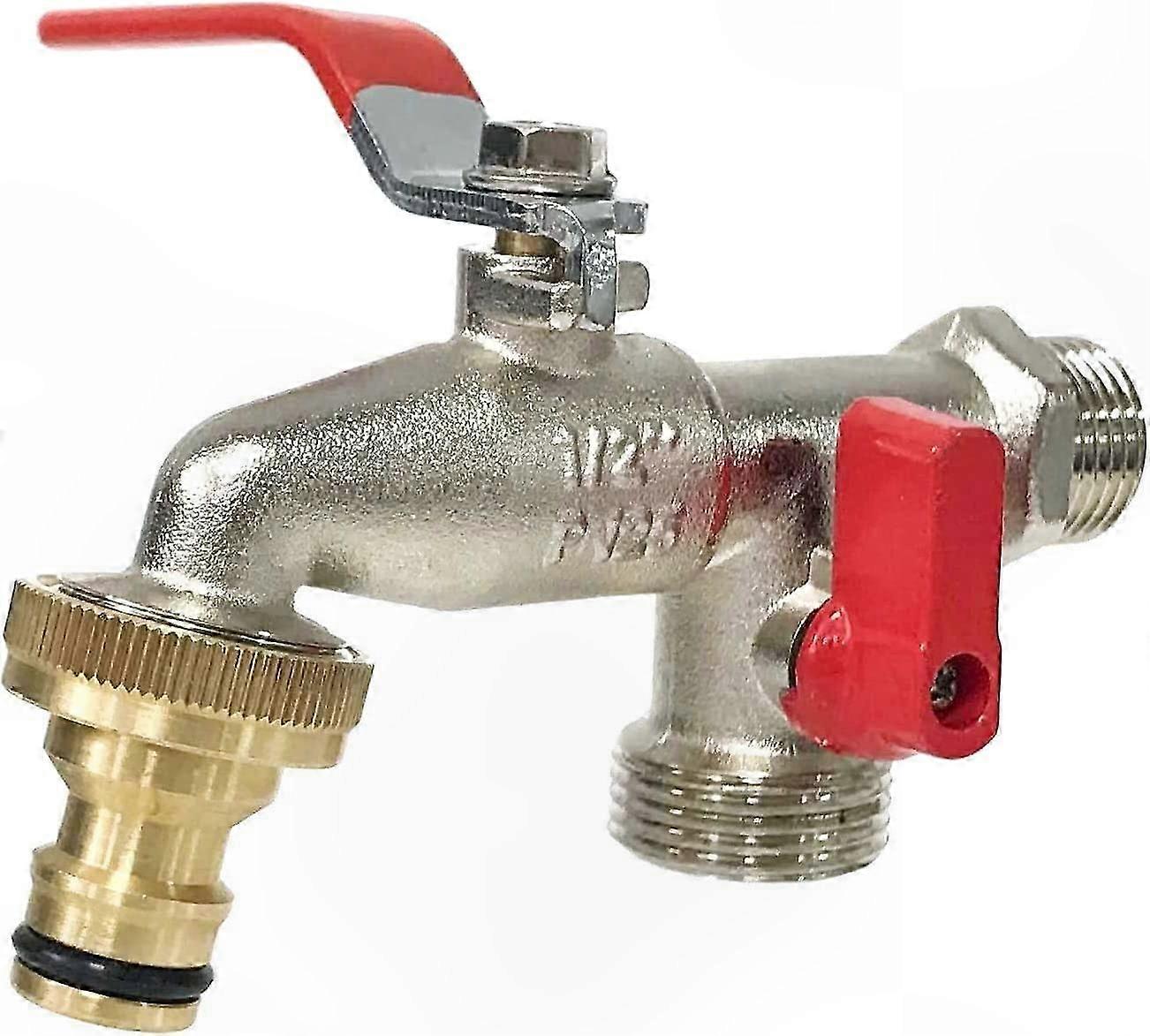 Dual Outlet Garden Tap 1/2" 3/4", Ideal for Patios and Decks with Timer Irrigation, Silver Tone Finish
