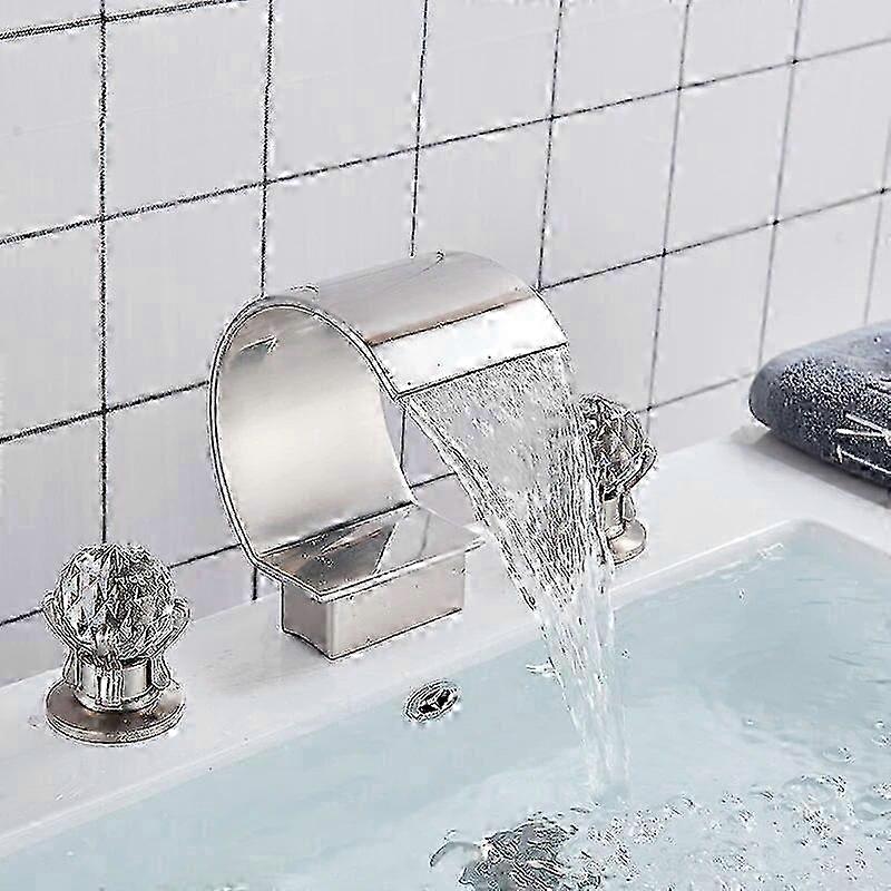 Three-piece Tub Faucet Hot Cold Water Mixer Tap Double Handle Crystal Handwheel Bathroom Basin Sink Faucet