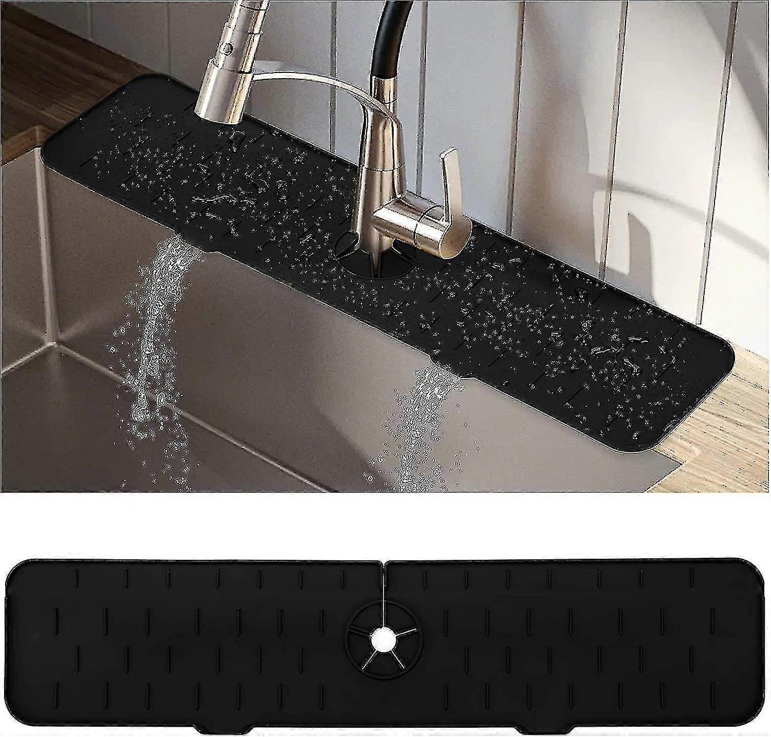 Faucet Splash Guard, Silicone Sink Faucet Splash Guard Mat, Faucet Handle Drip Catcher Tray, Kitchen Gadgets Sink Accessories For Kitchen Counter (bla