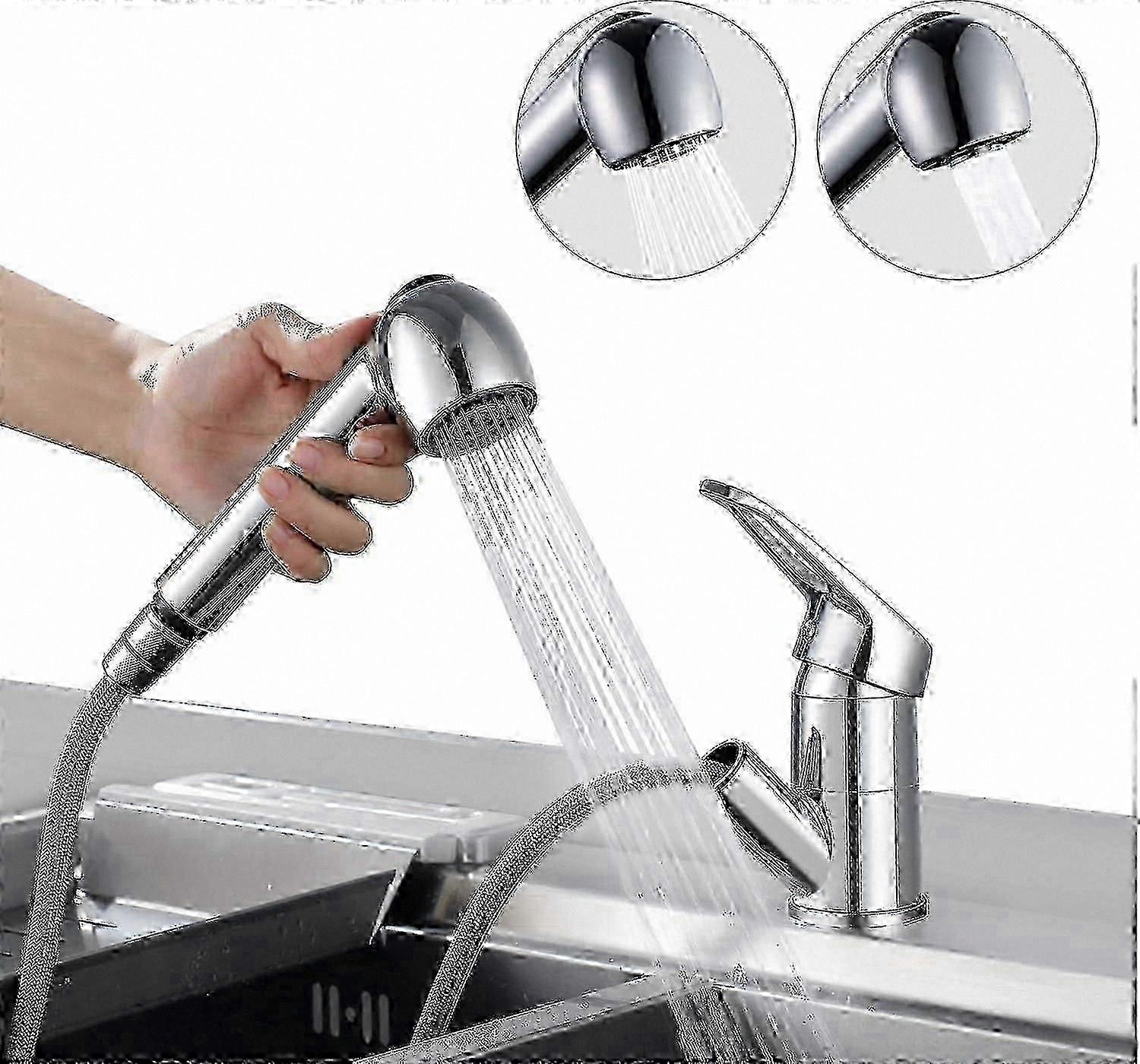 Chrome Single-Lever Kitchen Faucet with Pull-Out Sprayer, 360-Degree Swivel, Dual Function Mixer Tap for Sinks