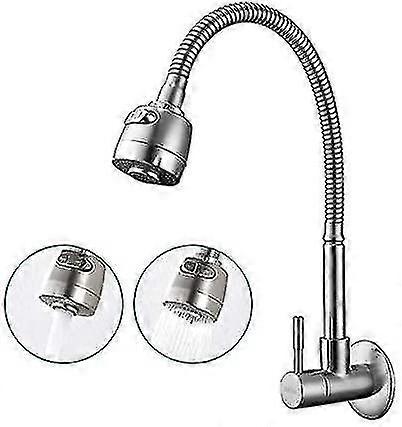 Wall-mounted Kitchen Faucet 360 Rotatable With Functions Kitchen Sink Mixer Tap Cold Water Single Cooling Wall-mounted Faucet On Brushed Surface Spri