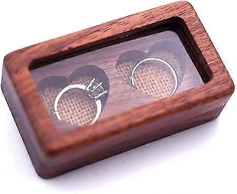 Wooden Ring Box,Engagement Wooden Heart Ring Box for 2 Rings, Portable Wedding Ring Bearer Box for Wedding