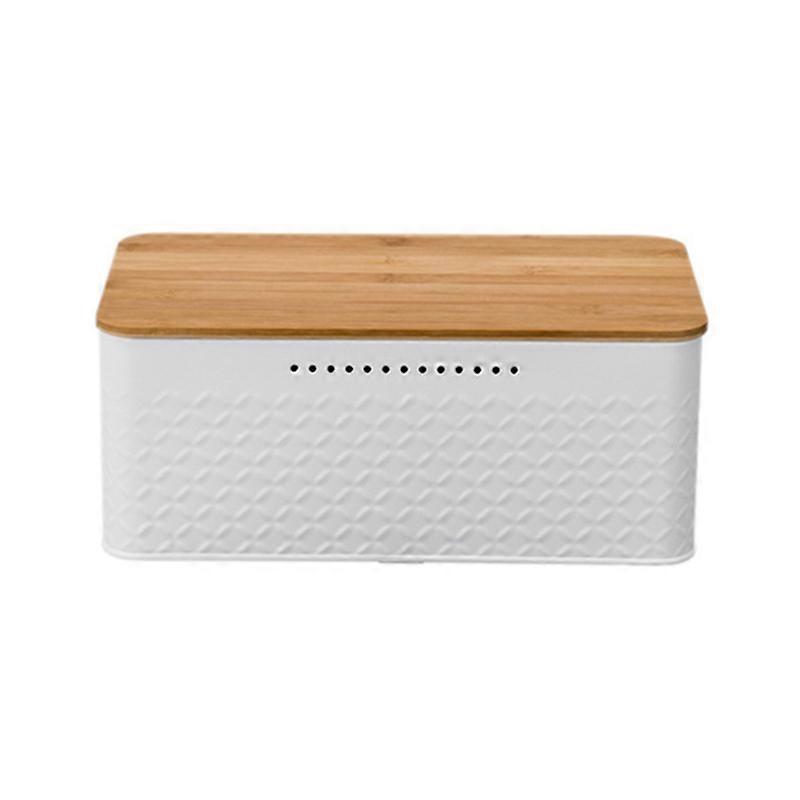 Bread Bin,with Integrated Ventilation Holes, Bamboo Lid White