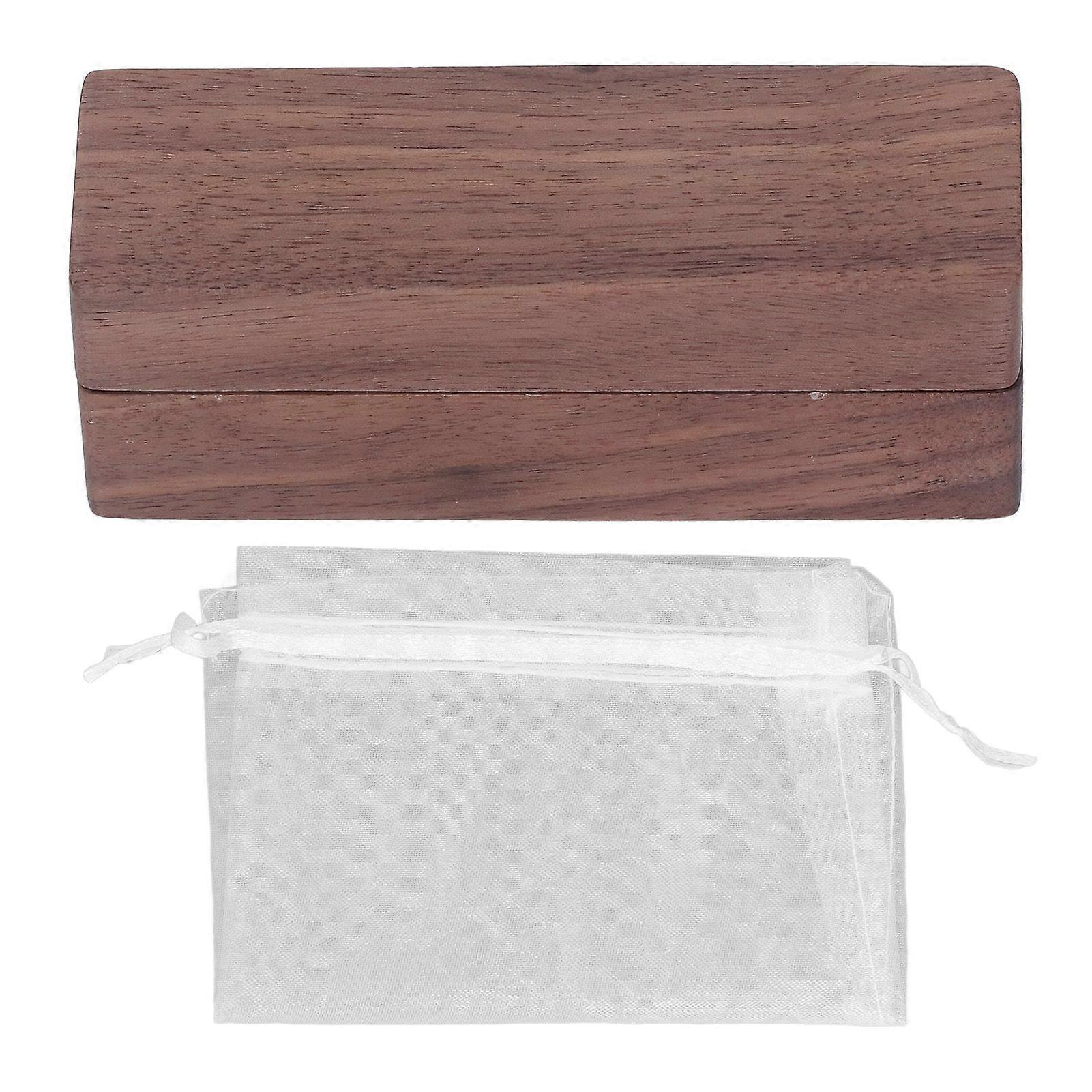 Wood Ring Box 2 Slots Durable Walnut Hand Polished Magnetic Enclosure Wooden Ring Holder for Rings Jewelry