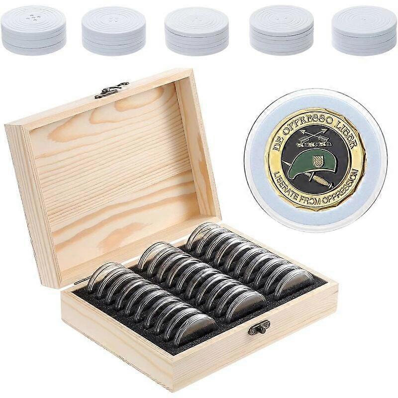 Coin Box, 30 Wooden Coins Storage Box, 20mm/25mm/30mm/35mm/40mm