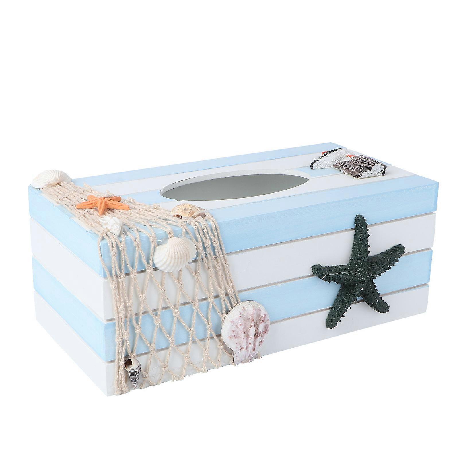 Nautical Tissue Box Home Use Bamboo Material Striped Star Design 1Pack