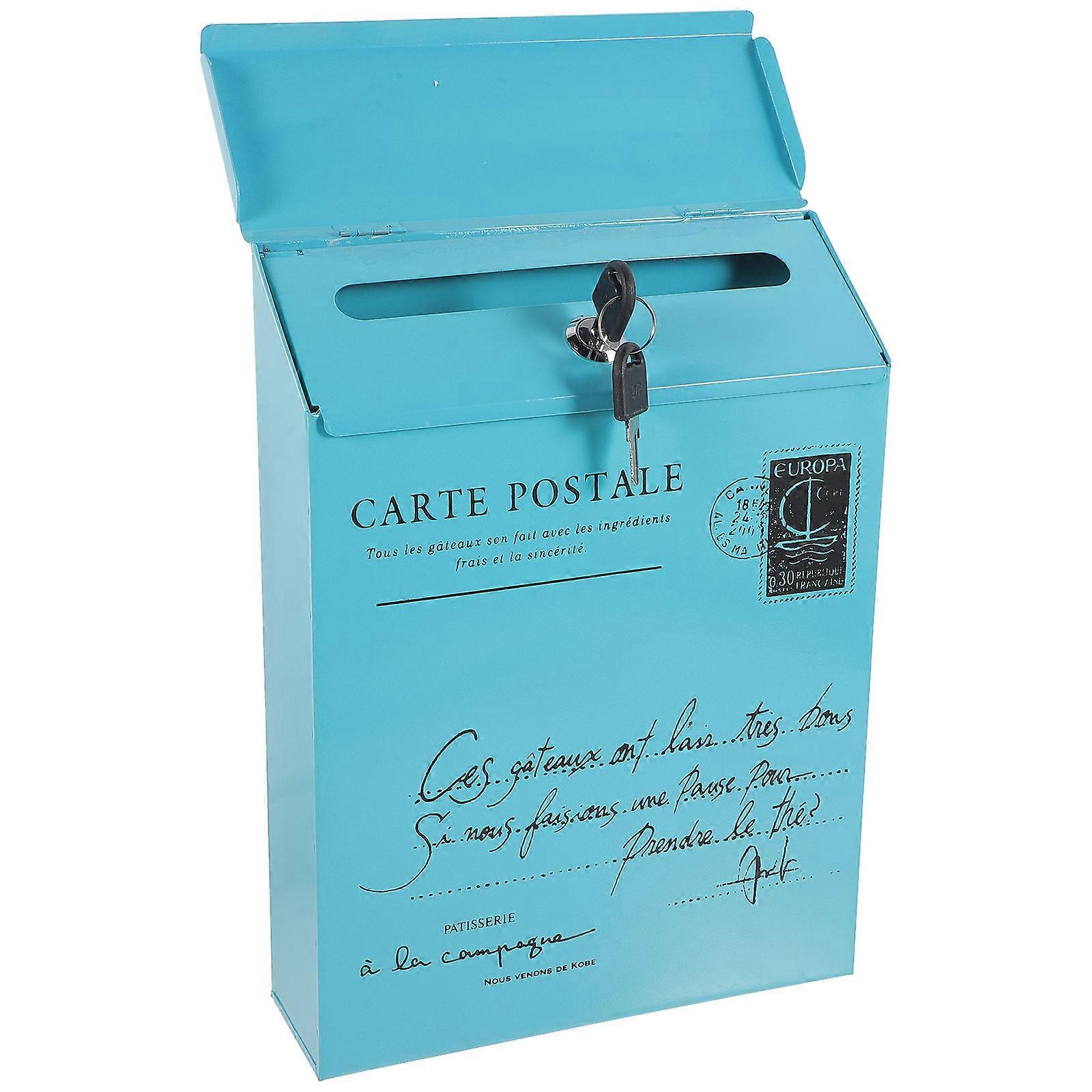 Retro Iron Mailbox Wall Mount Post Box Garden Use Lockable 30x22cm 1Set