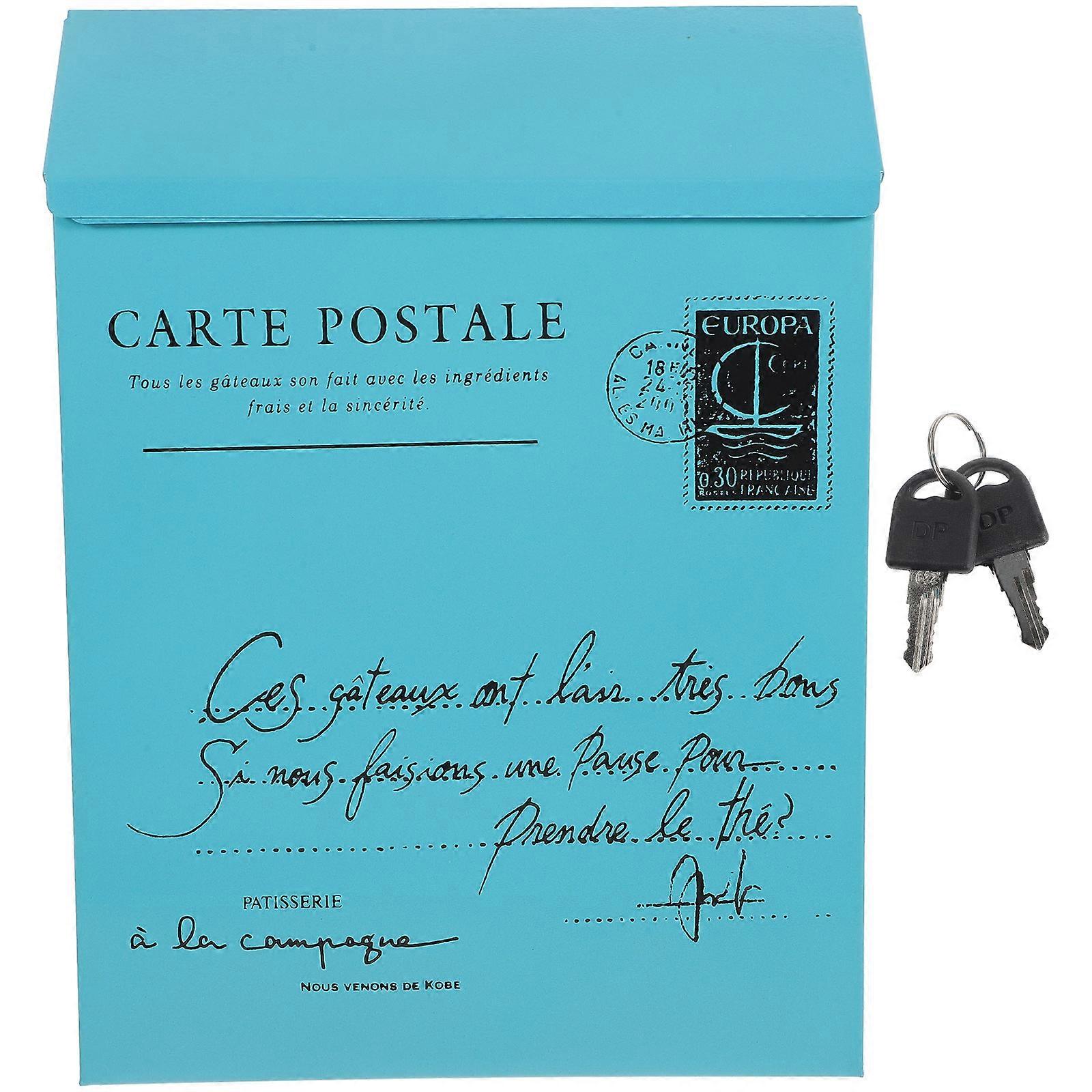 Vintage Mailbox Wall Mount Post Box Outdoor Use Lockable 30x22cm Iron 1Set