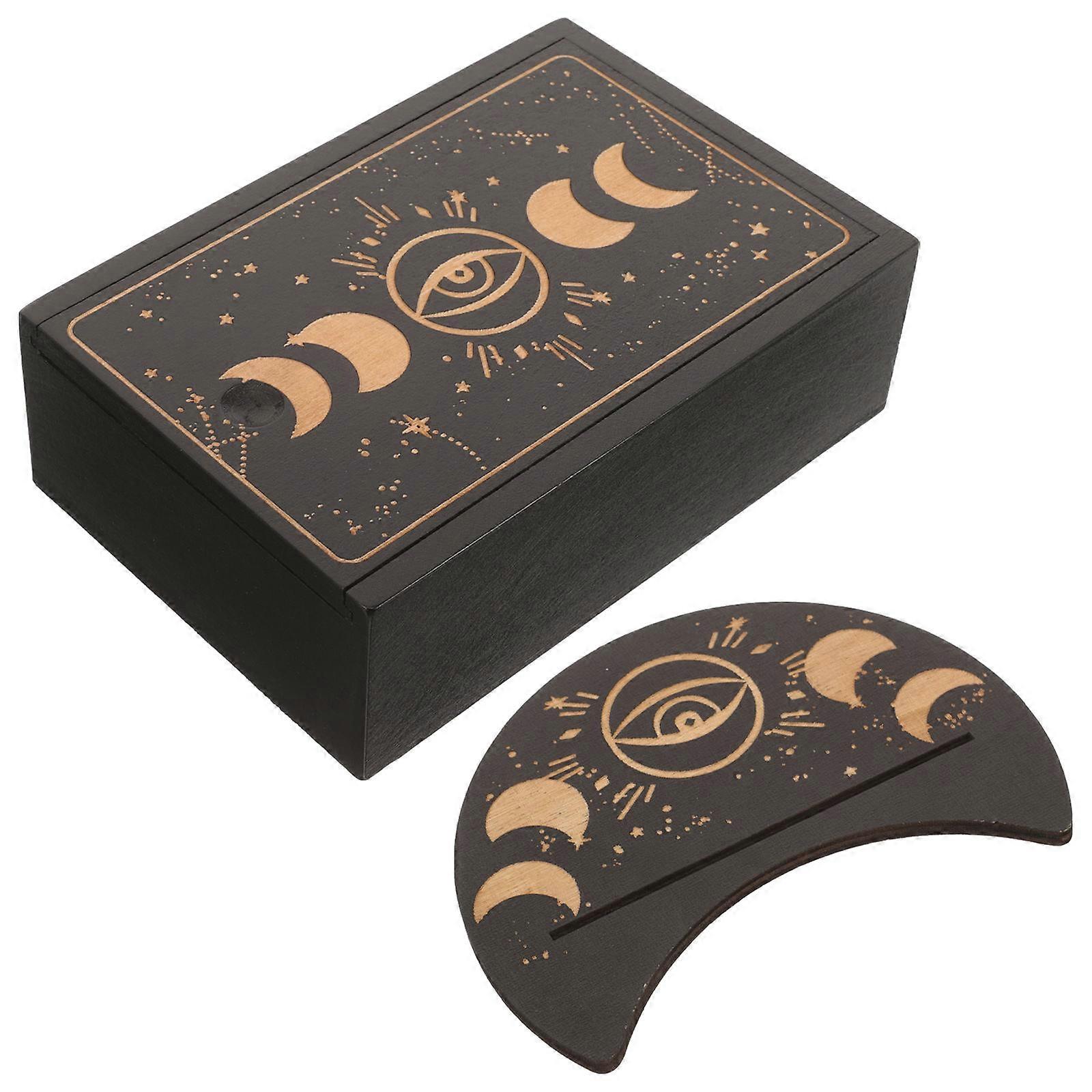 Wooden Tarot Card Box and Stand for Storage Use Black Compact Lightweight Design 1 Set