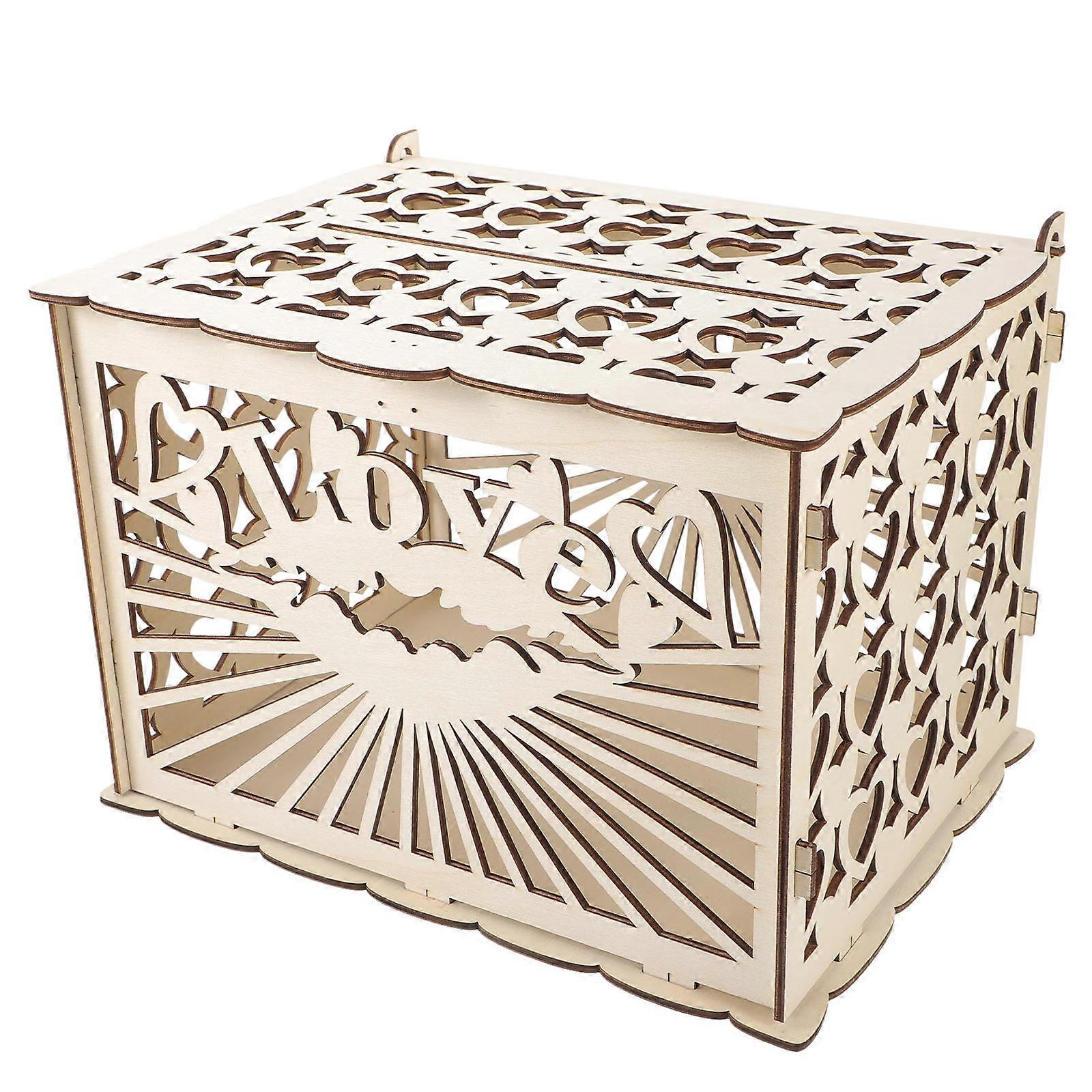 Wooden Wedding Card Box for Storage Khaki Color Large Capacity Craftsmanship 1 Piece