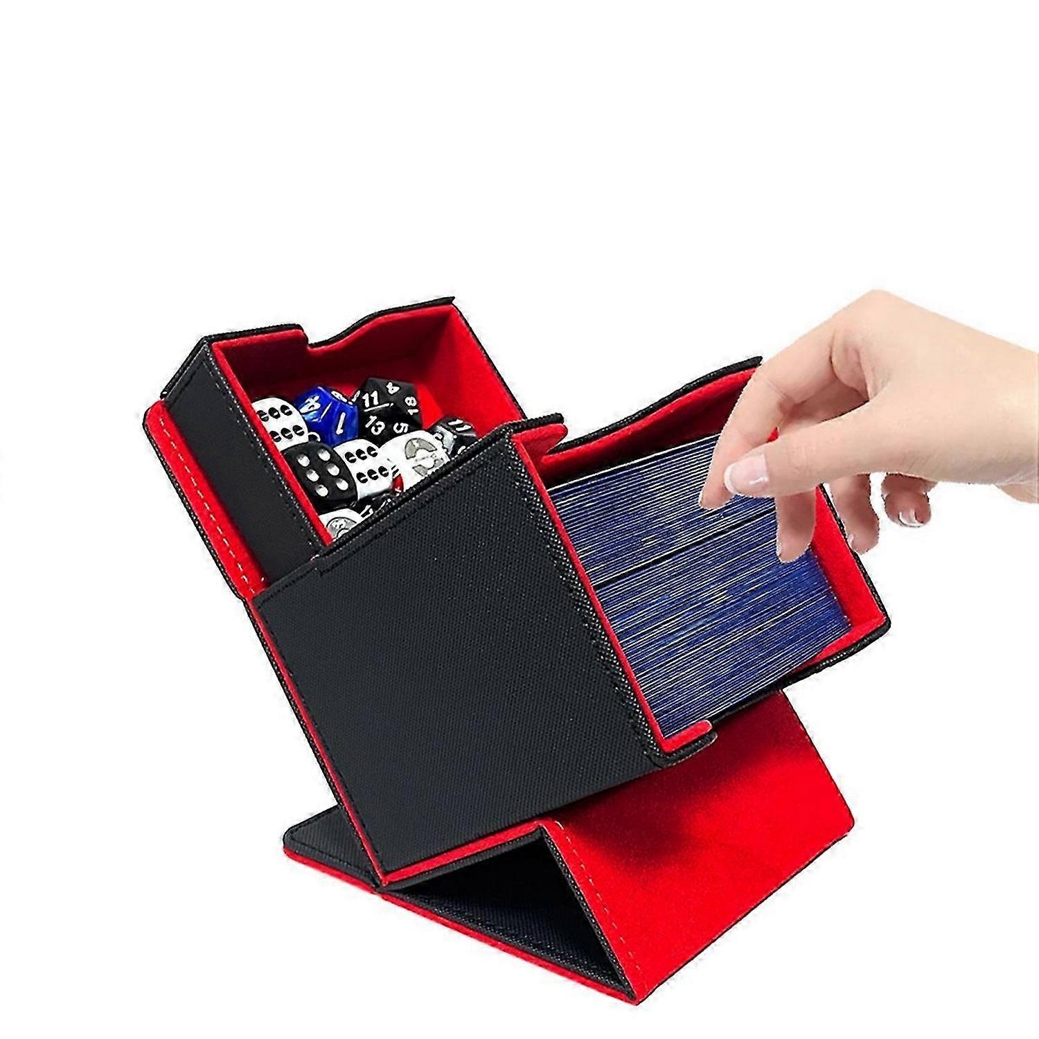 Card Storage Box with Dice Tray Collectible Card Case for Gathering Game Sleeved Cards Black+Gray