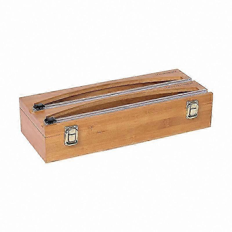 Bamboo Storage Box for Kitchen Wrap and Foil Cutter Dispenser