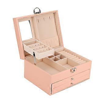 Jewelry Storage Box Multi Layer Large Capacity PU Leather Jewelry Case with Lock Key for Home Travel Sakura Pink