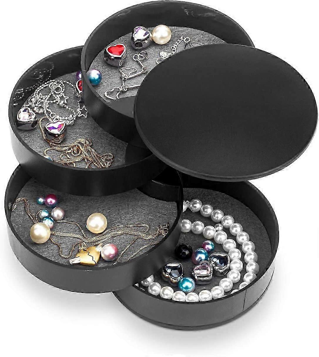 Jewelry Storage Box 4-Layer Rotatable with Lid (Black)