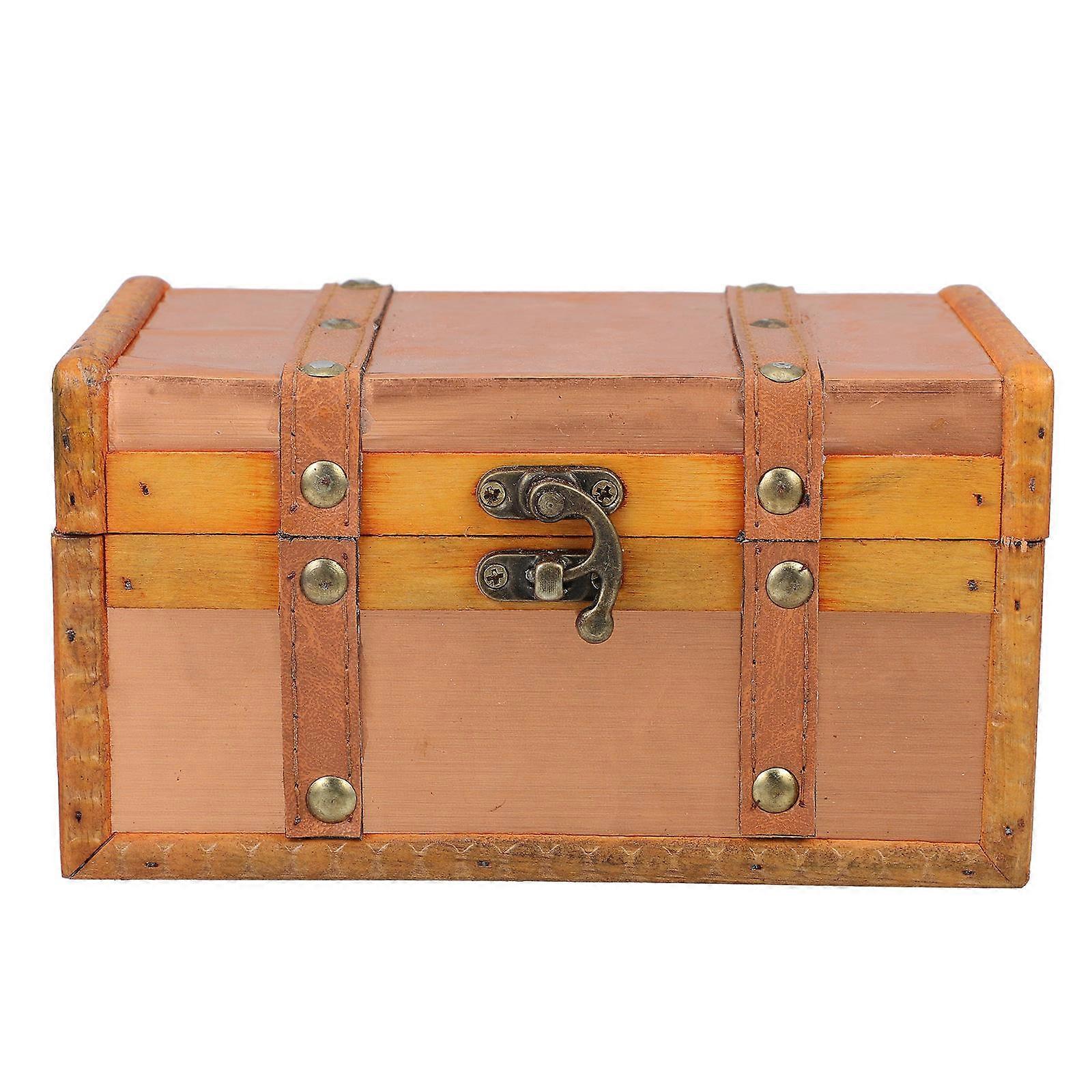 Vintage Wooden Storage Chest with Lid – Small Decorative Keepsake Box for Trinkets & Desk Organization, Retro Style Handcrafted Wood Container