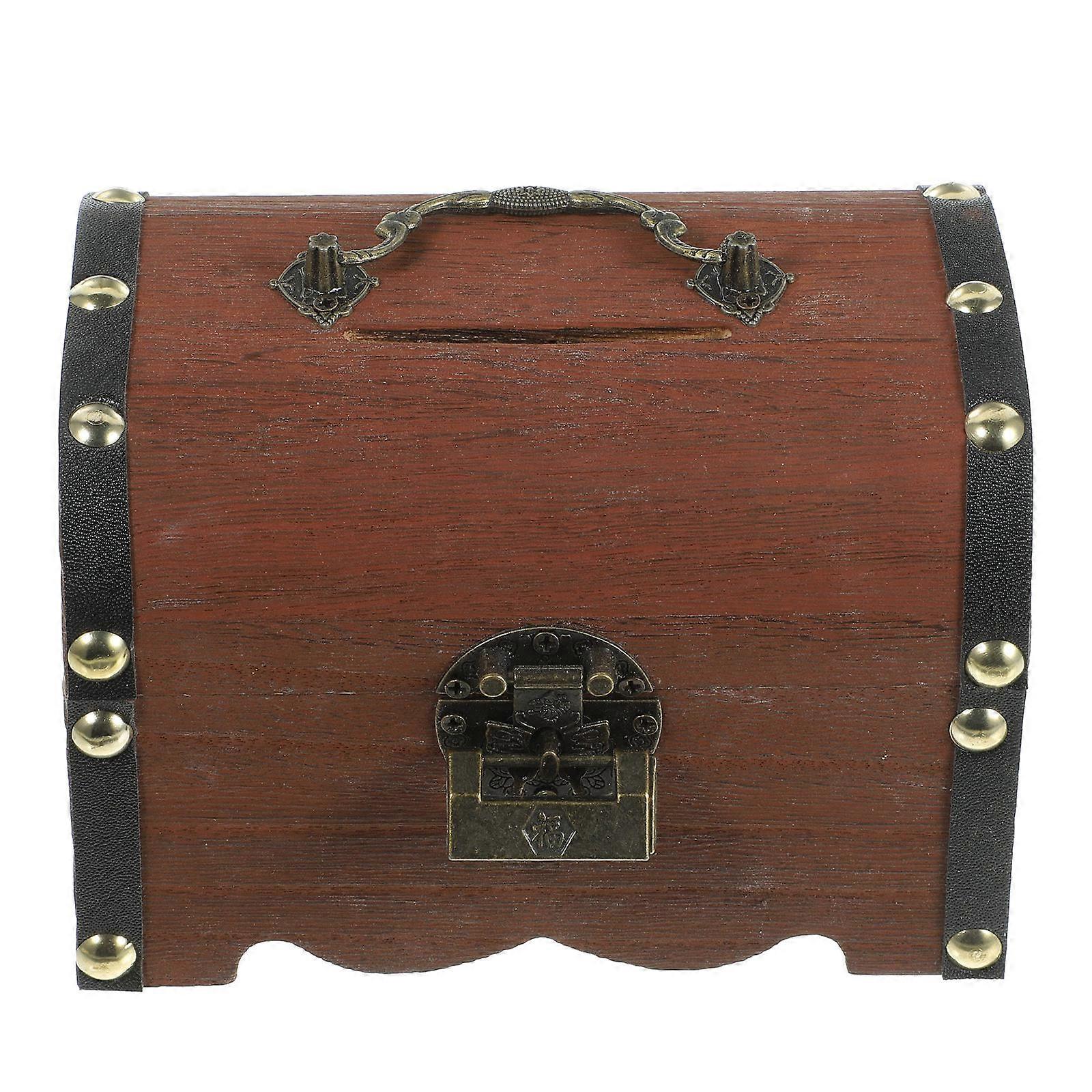 Wooden Storage Box Retro Piggy Bank Decorative Treasure Chest with Lock for Memories Trinkets Keepsake Organizer for All Ages