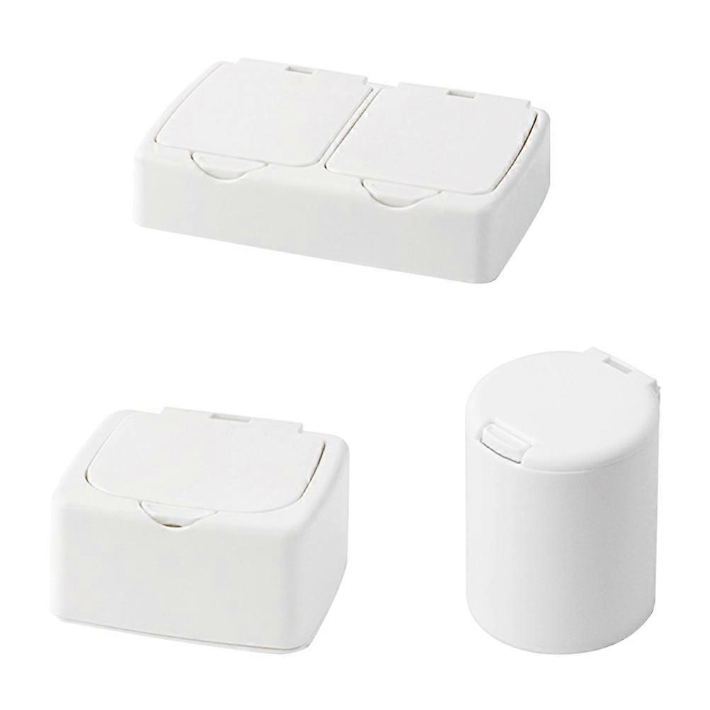 Desktop Storage Box Classified Storage Round Shape Multi-Function 9.3x7.5cm White 3Pcs