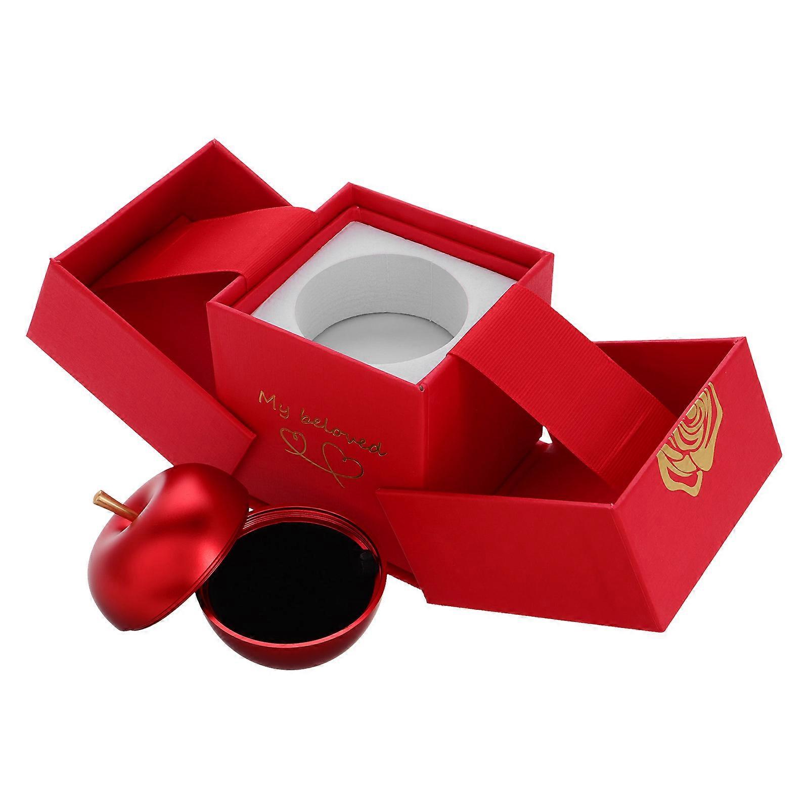 Red Metal Apple Jewelry Storage Box for Christmas with Lid