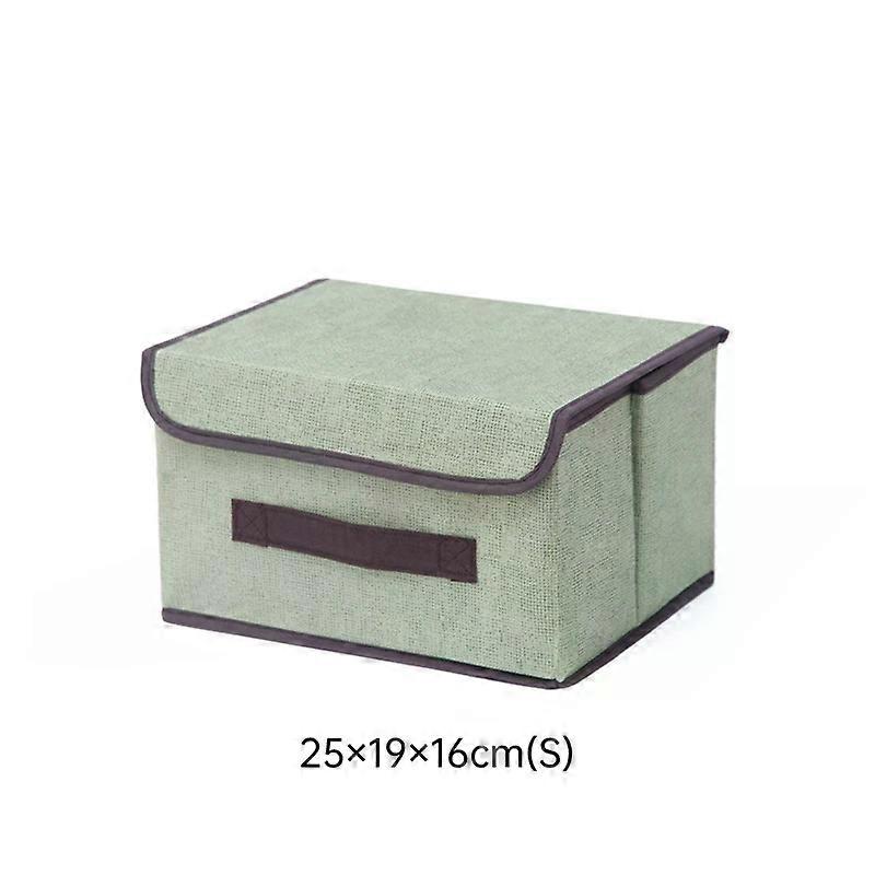 Material: Cotton, Linen, Cardboard Size: 36x23x24cm(Large), 25x19x16cm(Small) Available Color: Green, Grey, Beige Specifications: 1. With lid design effectively prevent from the dust, better to your clothes. 2. Handle was made of stainless steel rivets. It's more firm. 3. Folding design, convenient for mentle, and can be folded up when not in use, just take a little place. 4. Large volume, can contain Underwear, Bra, Underpants and sock, Children toys, bag, books, etc. 5. It can help you make the house more neat and order. Package Included: 1* Foldable Storage Box