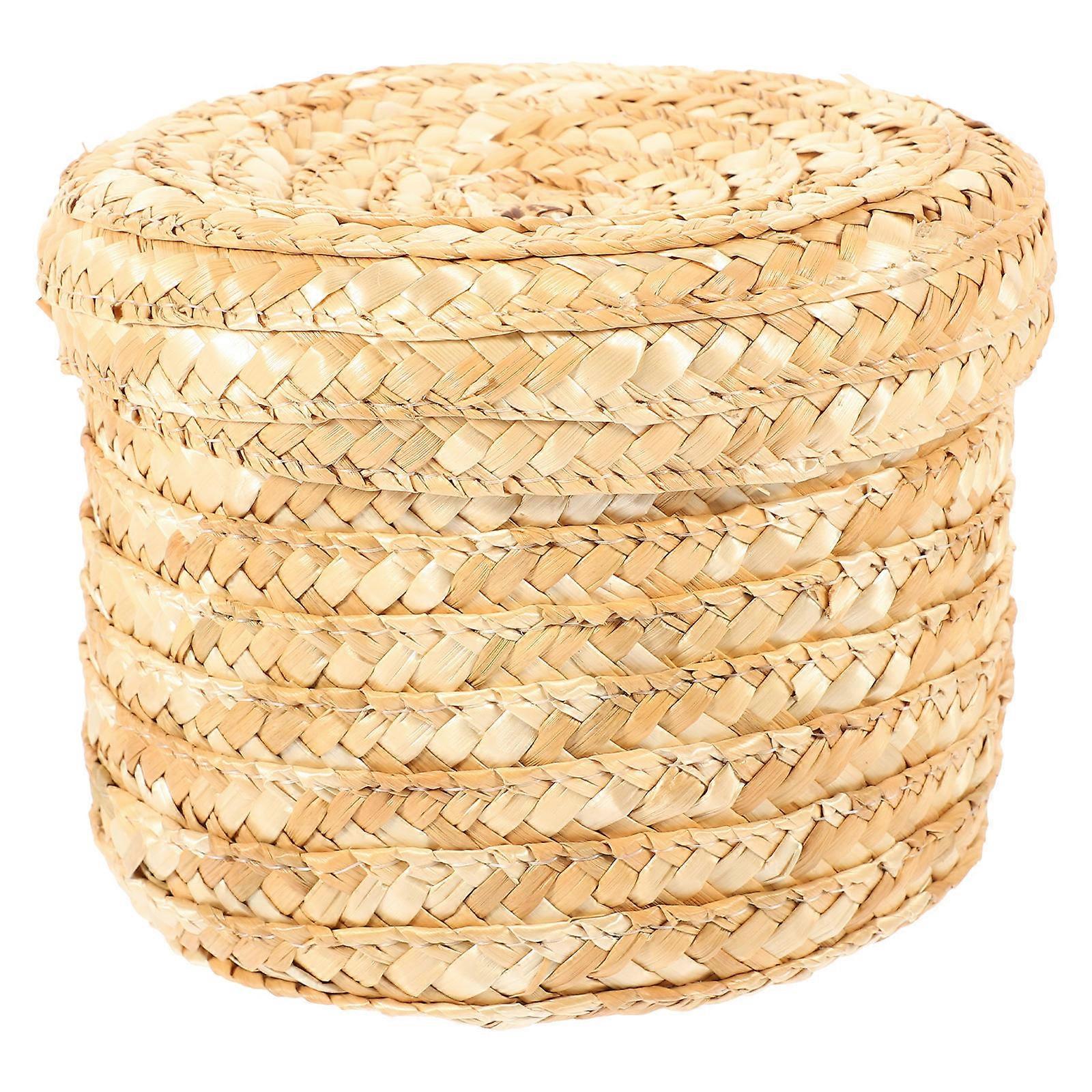 Woven Storage Bin With Lid For Home Organization And Room Decoration In Beige Color Made Of Wheat Straw 1Pc