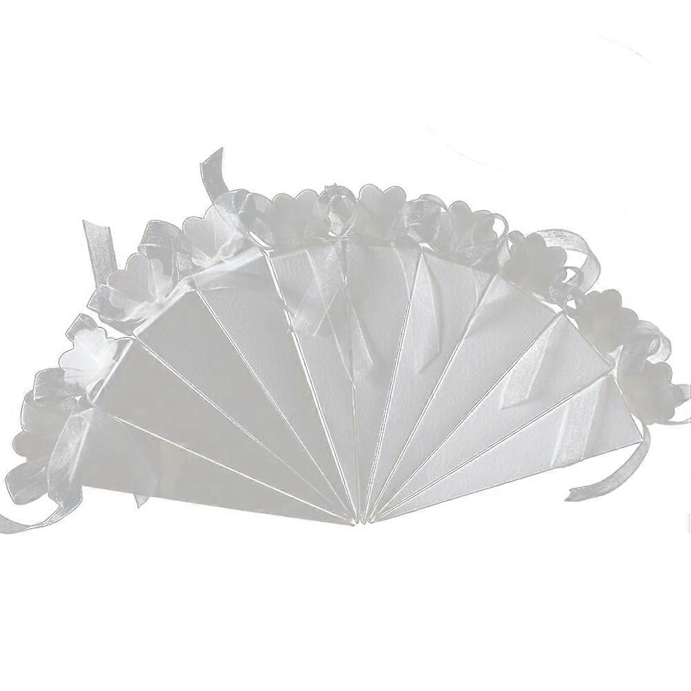 Souvenir Box Pyramid Style Triangle Wedding Favor present Boxes Candy Containers with Ribbon White 20.5 x 4 x 4 cm for Guests 50Set