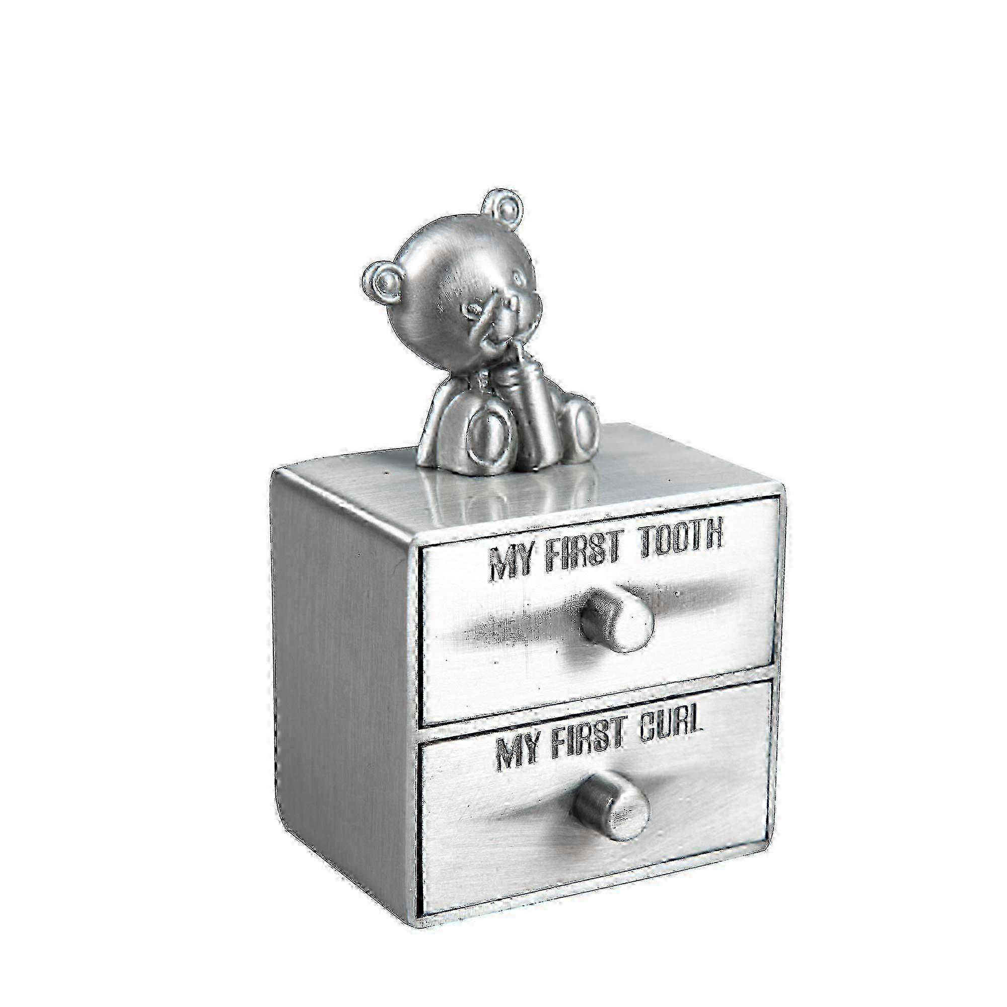Baby Keepsake Box for First Curl and Tooth, Metal Organizer Set with Engraved Bear Design, Tooth Fairy Holder for Christening Gifts