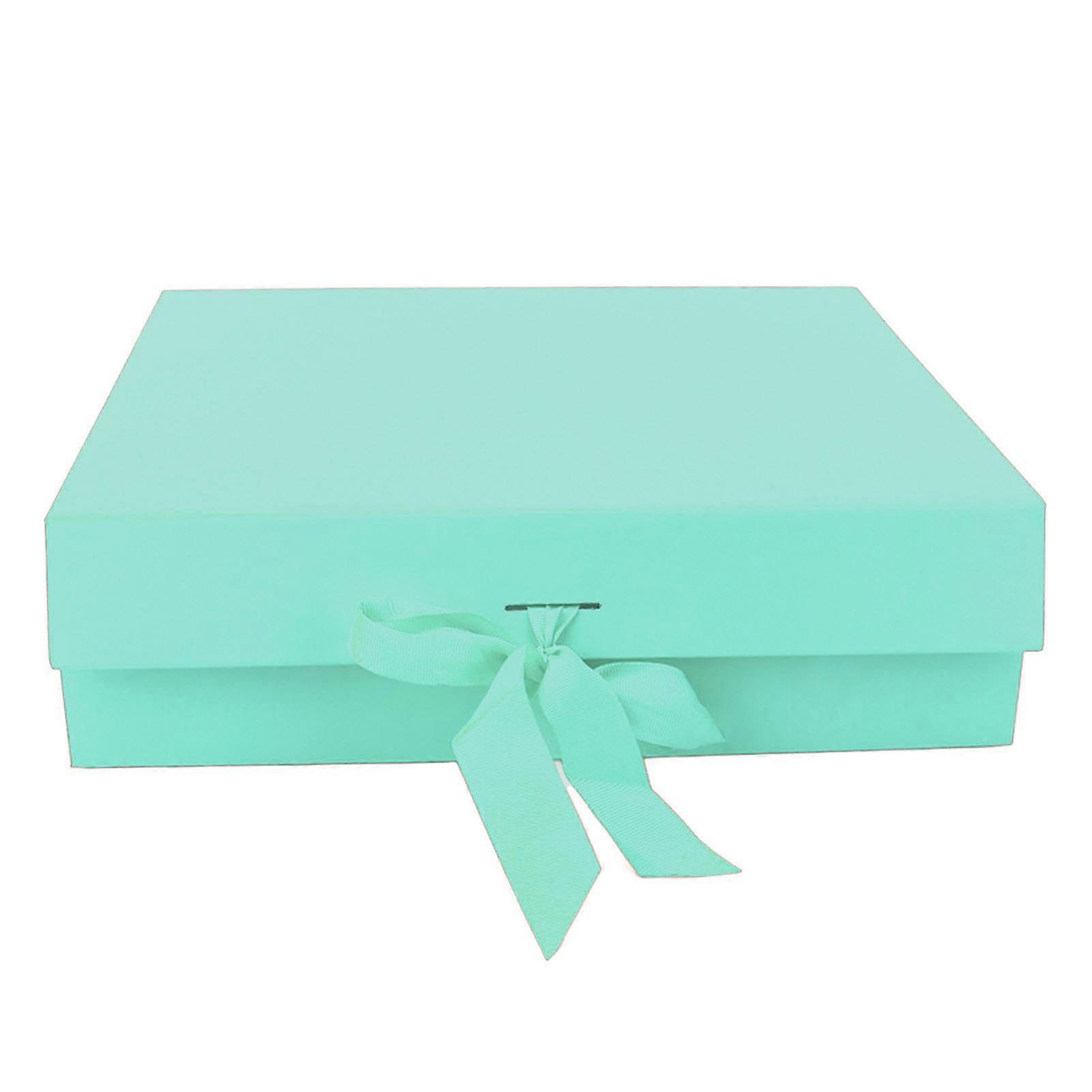Cosmetics Packaging Box Pure Color Collapsible Gift Box With Lid Ribbon For Perfume 12.2 X 10.6 X 3.5 Inch Green