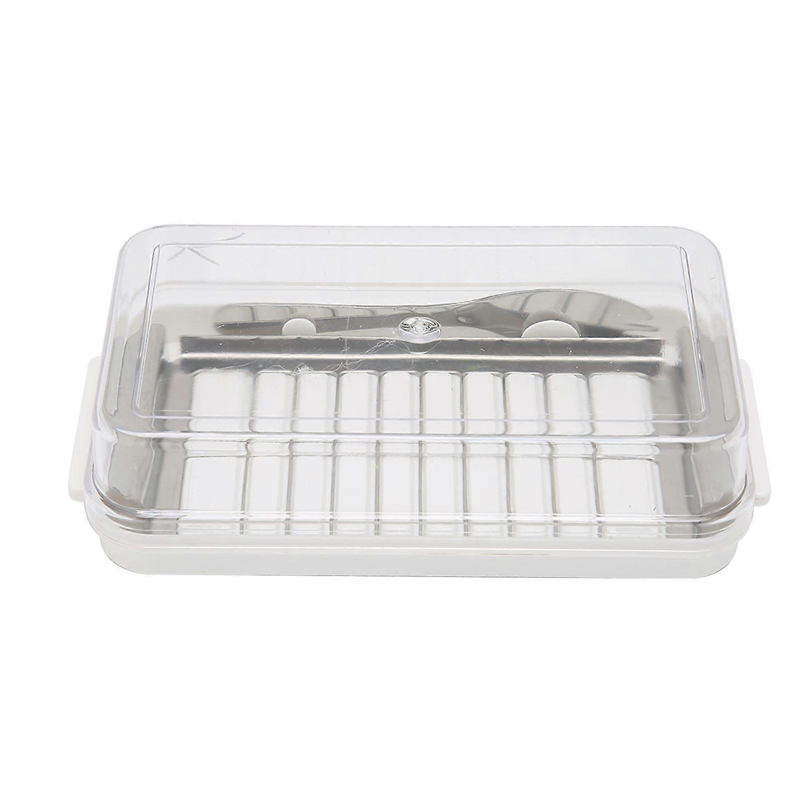 Stainless Steel Butter Cutter Box Cheese Storage Container with Transparent Cover for KitchenWhite Chassis