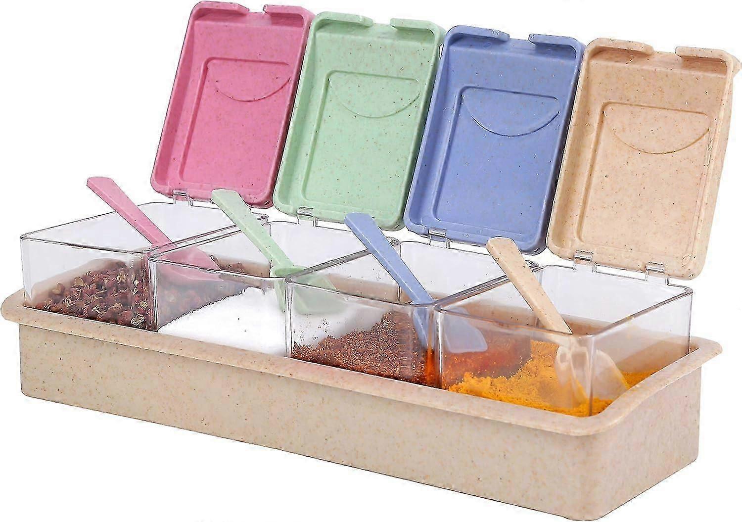 Clear Spice Box with Lid and Spoon, Four Compartment Spice Jar and Pot, Spice Bottle Jar and Storage Organizer Kitchen Supplies, 24 x 8.6 x 4 inches