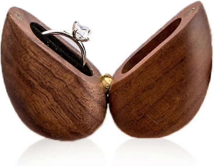 A heart-shaped ring box that represents love and is a unique way to surprise your loved one during the ceremony.Made of walnut wood, the ring box is stable and has a sponge padded interior to avoid damage to the ring. Metal links, durable and well made.Small and portable, even in your pocket, you will not notice when you make a surprise. The ring box measures 5.6 x 5 cm.The magnetic closure is designed to close well by the attraction of a magnet. The ability to easily open or remove the ring during the ceremony.Ideal for marriage proposals, weddings, engagements, anniversaries to pack and store rings and create a romantic atmosphere.