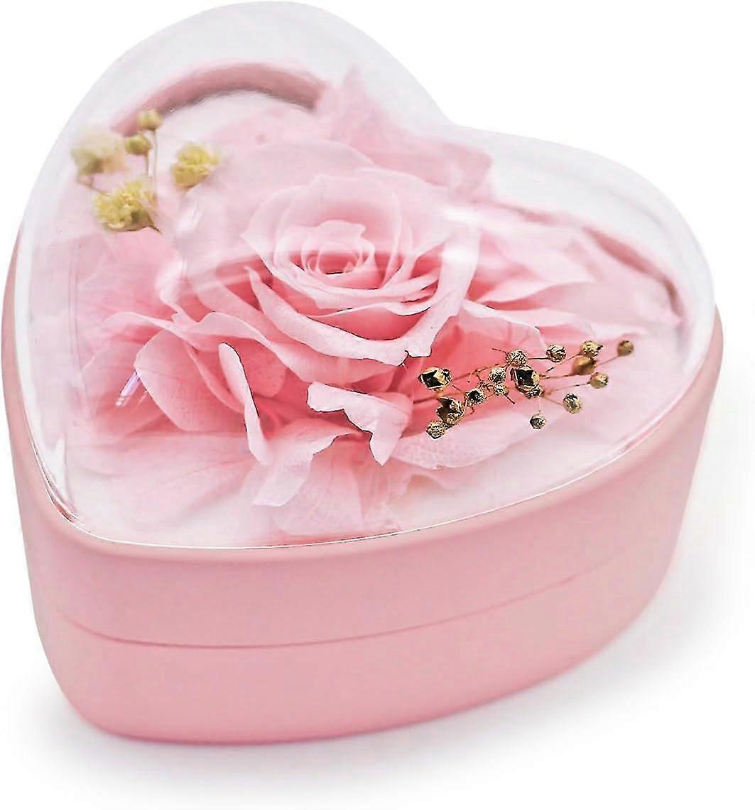 Preserved Flower Rose Ring Box, Heart Shape Velvet Jewelry Box For Valentine's Day Mother's Day Wedd