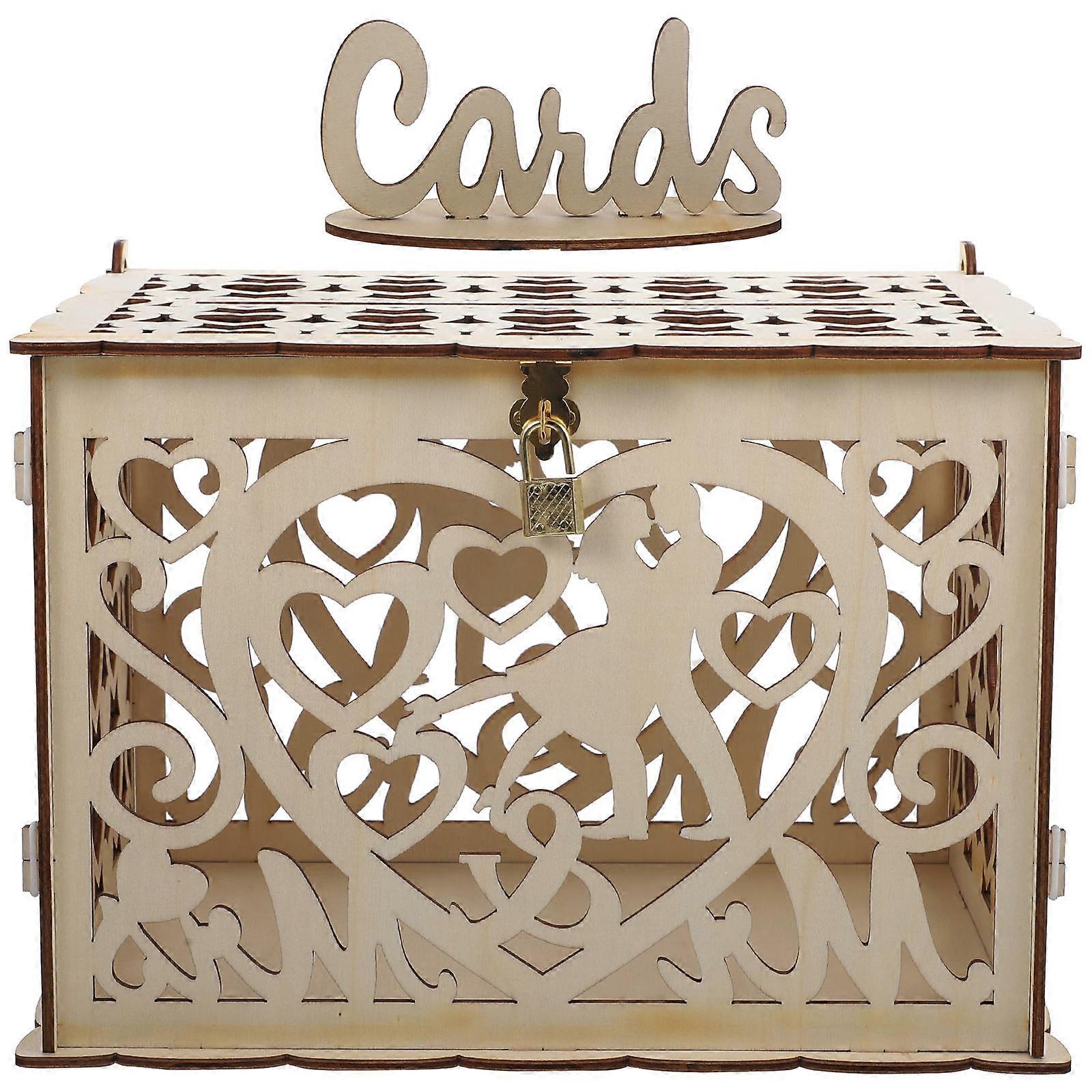 Wooden Wedding Box for Home Beige Decorative Receiving Box with Hollow Design 1 Piece