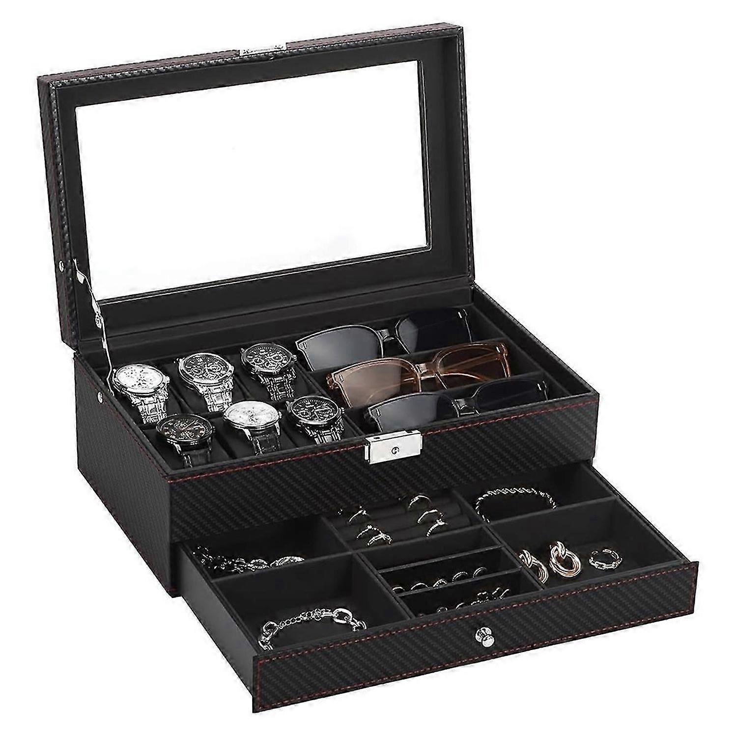 Watch Box, Mens Jewelry Box, 2 Layers Lockable Watch Holder